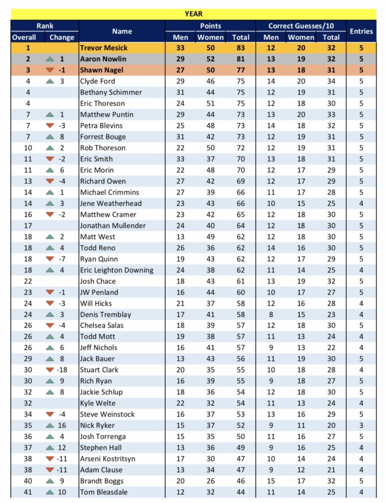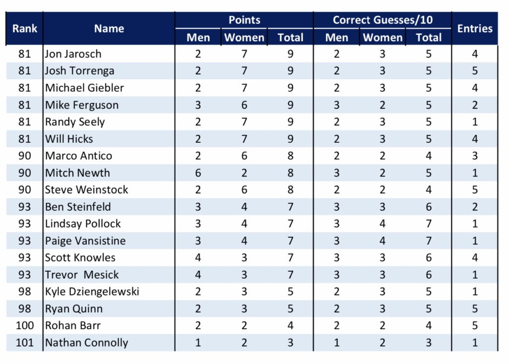 — 15 pts for perfect men’s ballot