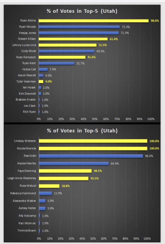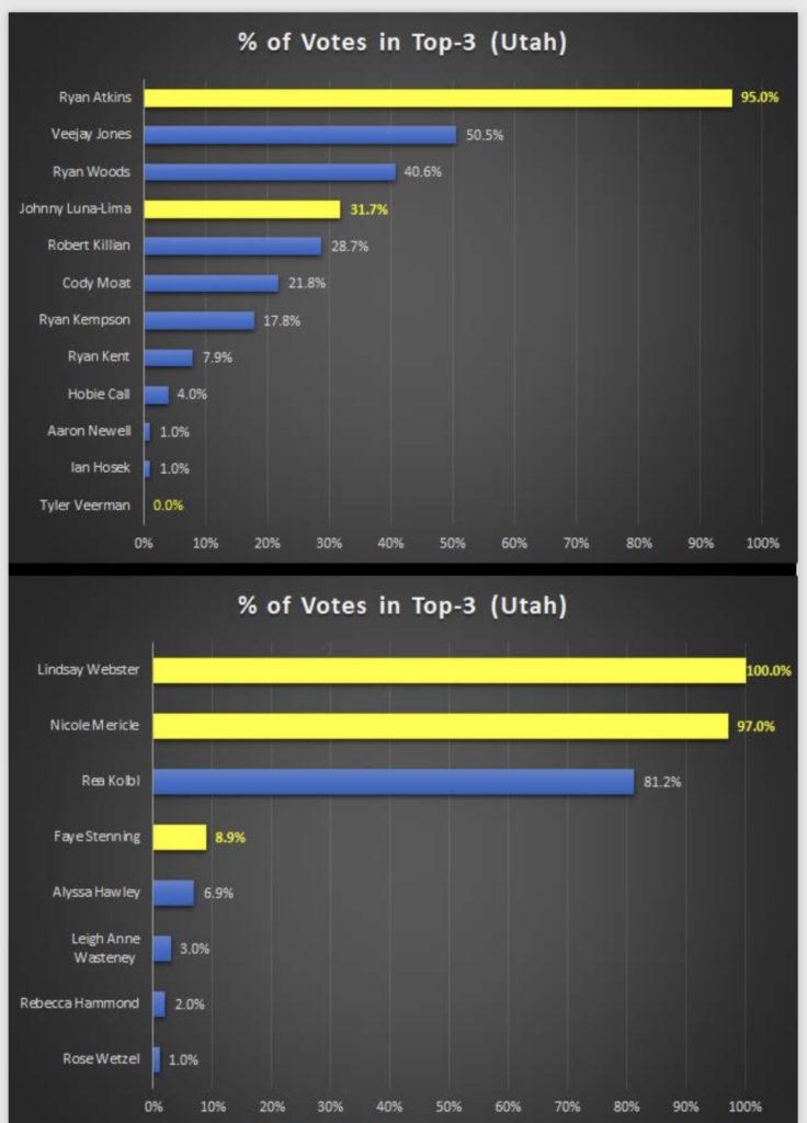 — 15 pts for perfect women’s ballot