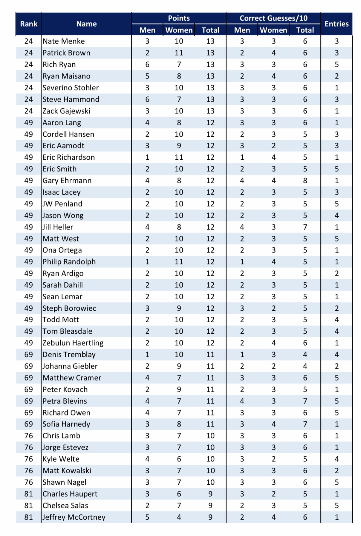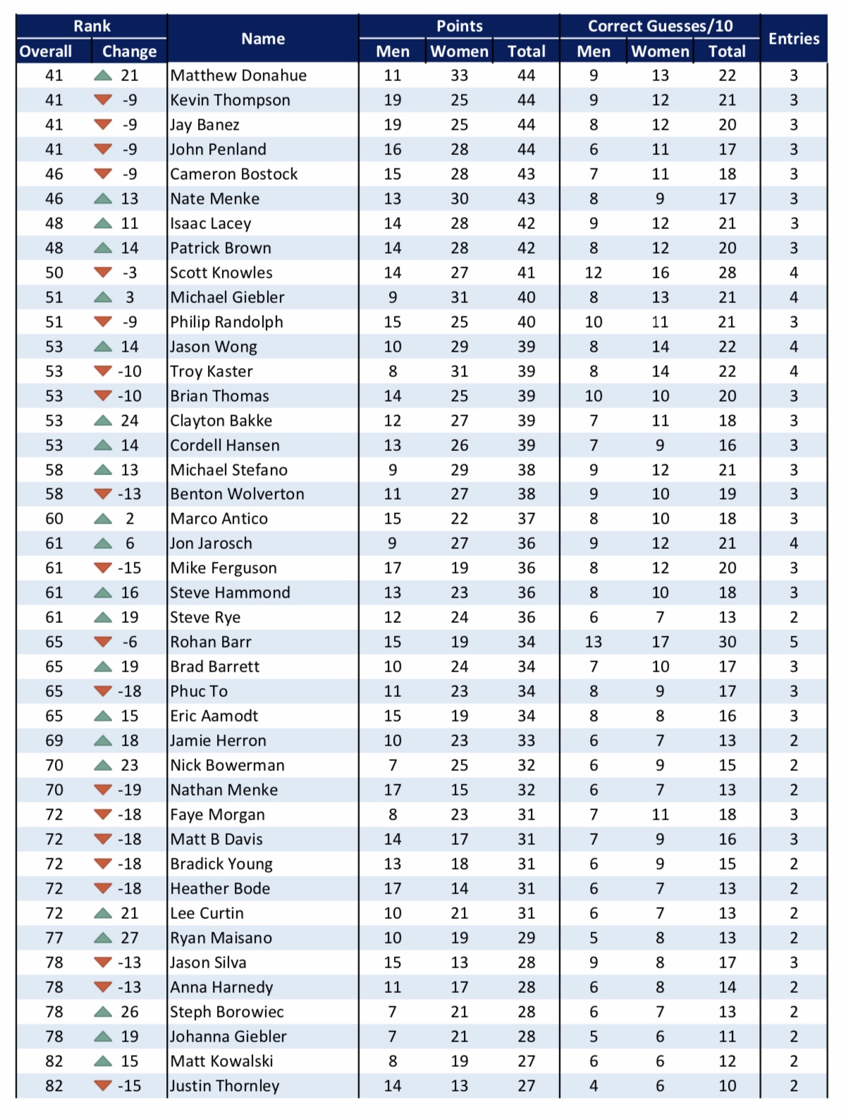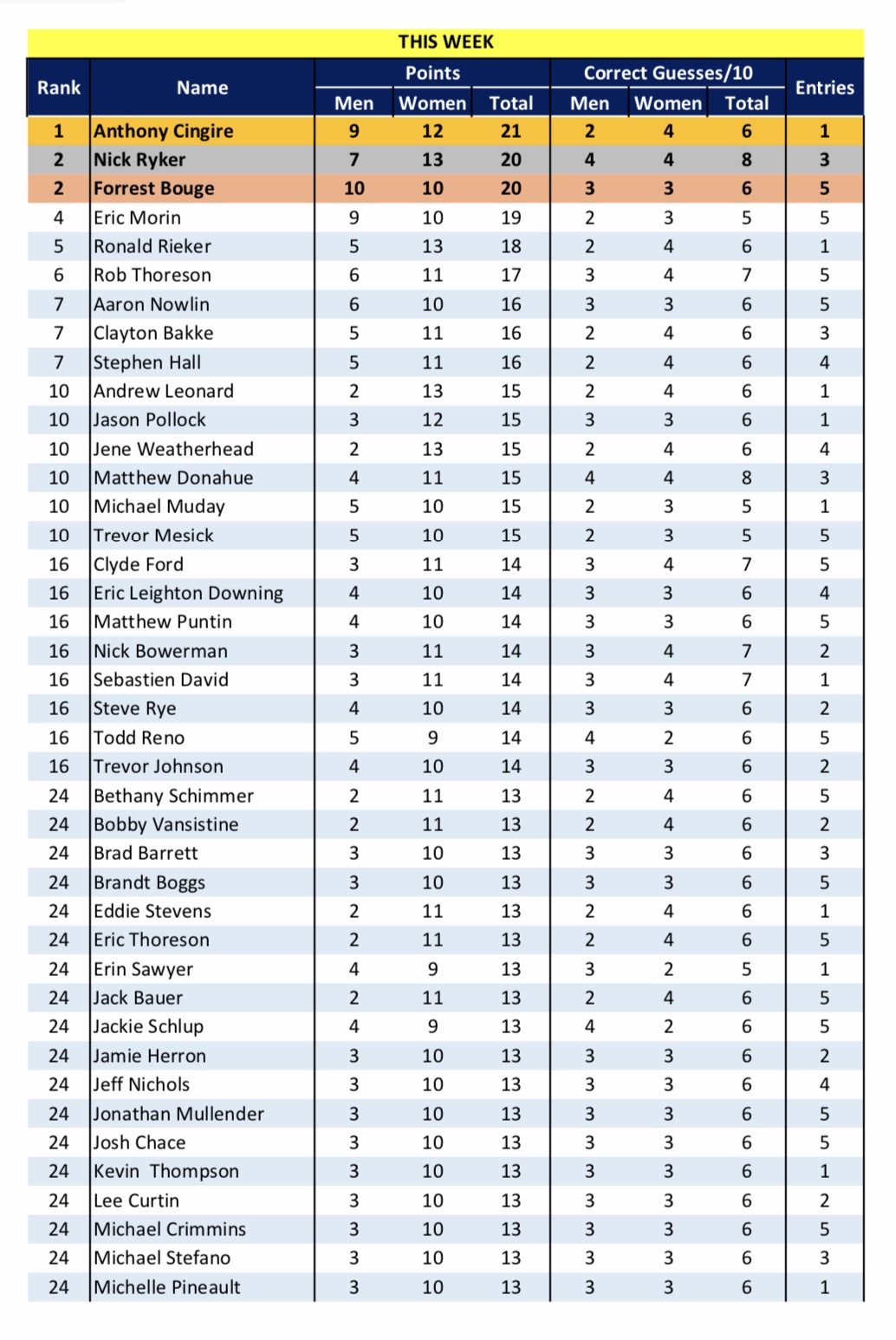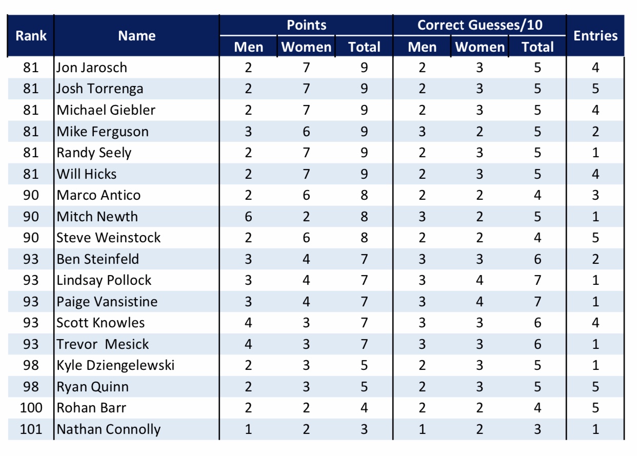 — 15 pts for perfect men’s ballot
