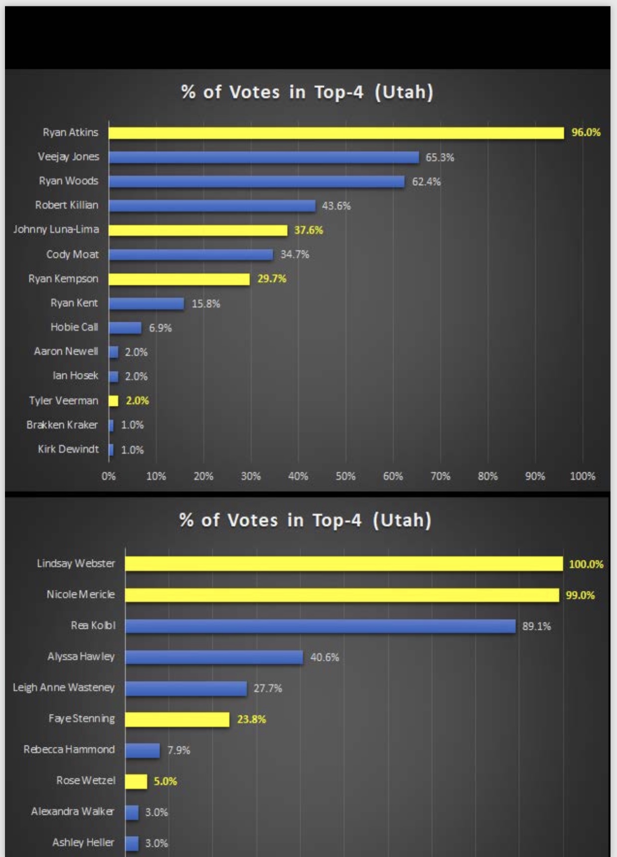 — 15 pts for perfect women’s ballot